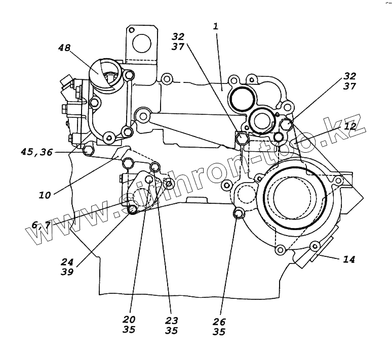 Каталог запасных частей к технике: Камский автозавод 65116. Установка корпуса водяных каналов