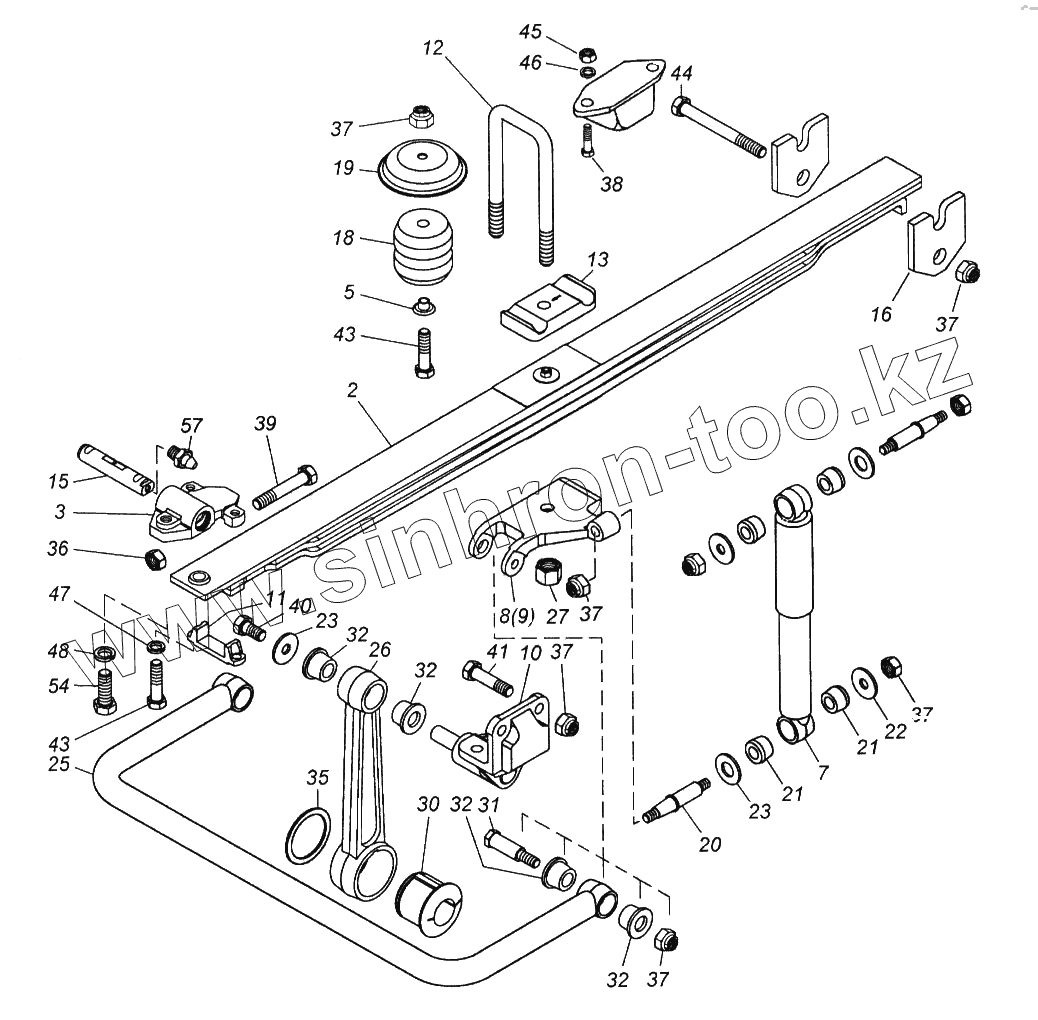 Каталог запасных частей к технике: Камский автозавод 65116. Установка передней подвески