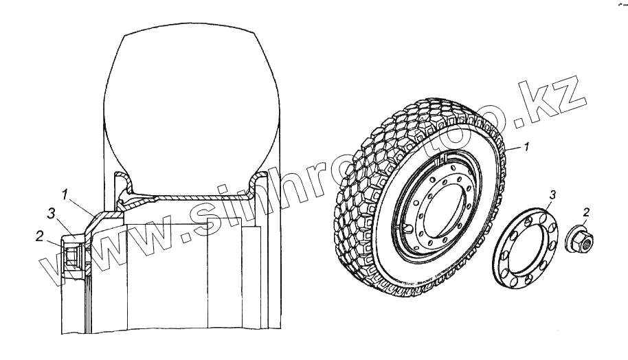 Каталог запасных частей к технике: Камский автозавод 65116. Установка передних дисковых колес