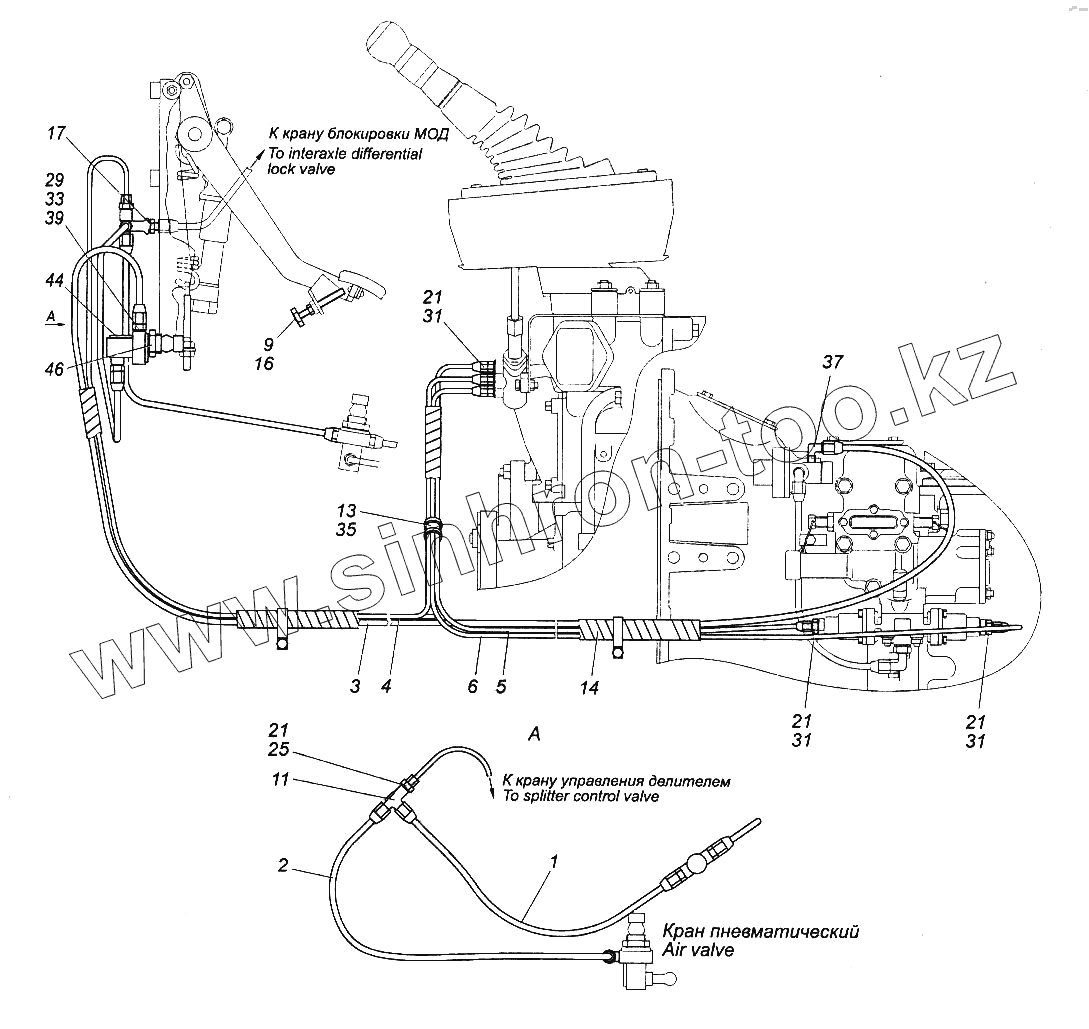 Каталог запасных частей к технике: Камский автозавод 65116. Установка пневмопривода управлением переключения передач