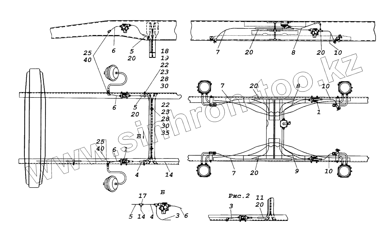 Каталог запасных частей к технике: Камский автозавод 65116. Установка пневмоуправления системой АБС