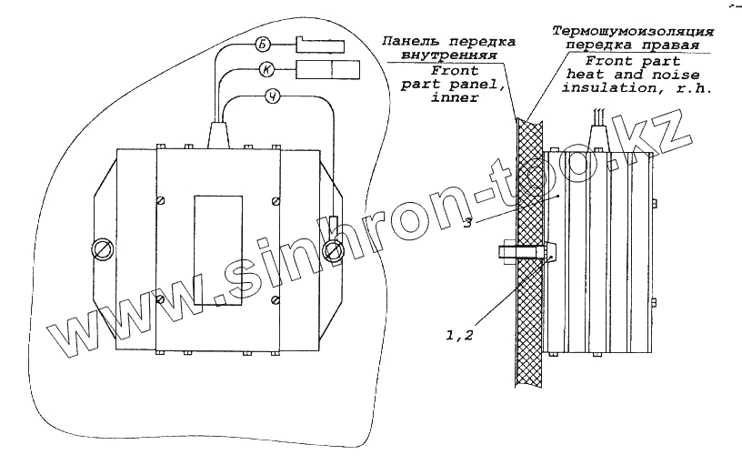 Каталог запасных частей к технике: Камский автозавод 65116. Установка преобразователя напряжения