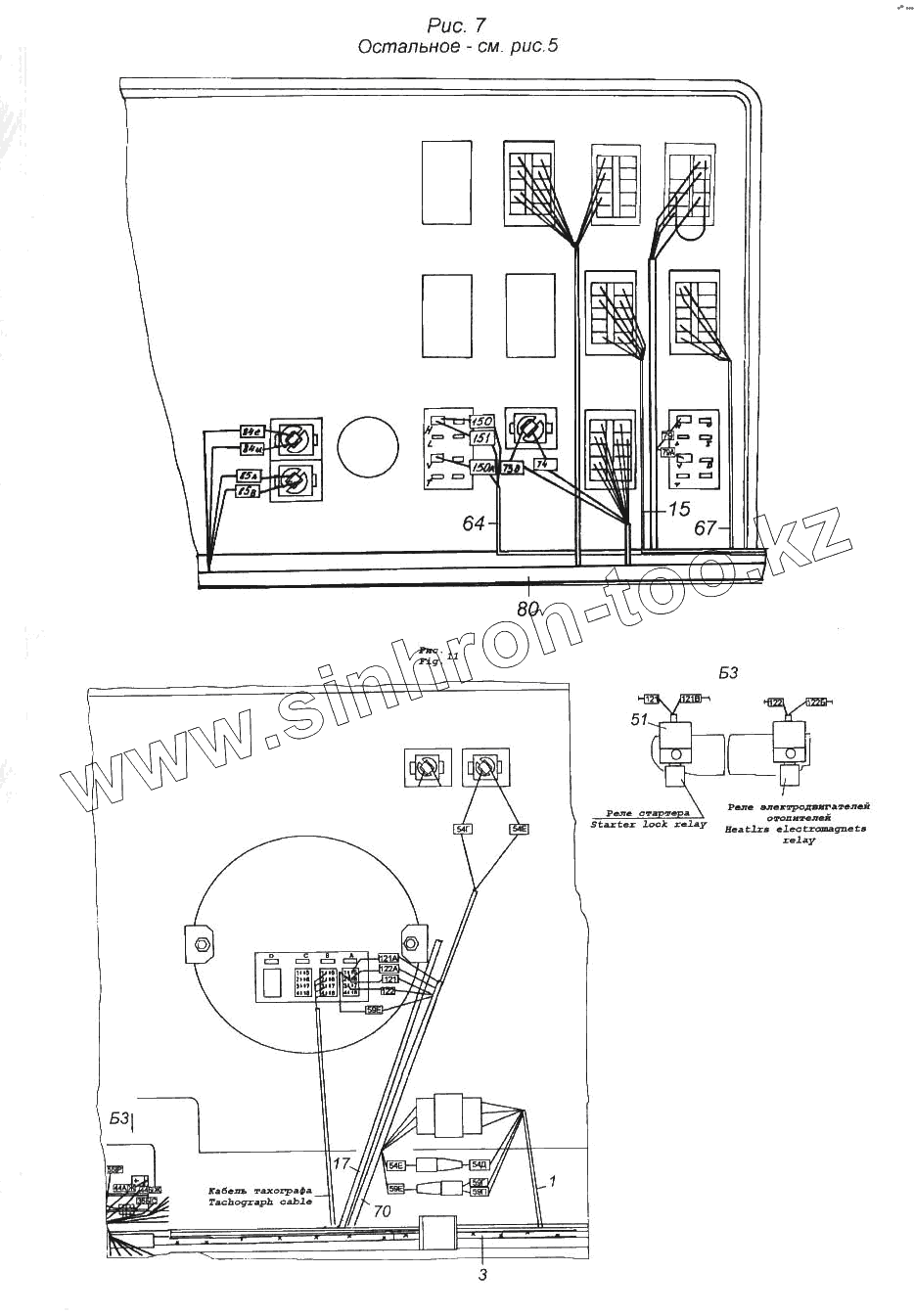 Каталог запасных частей к технике: Камский автозавод 65116. Установка проводов на кабине