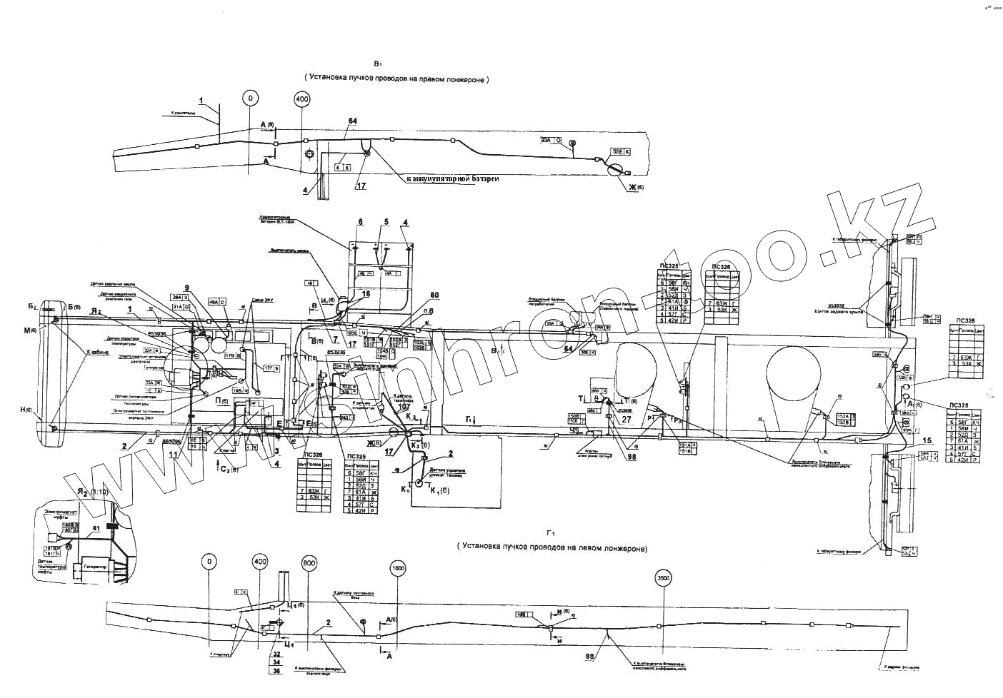 Каталог запасных частей к технике: Камский автозавод 65116. Установка проводов на шасси