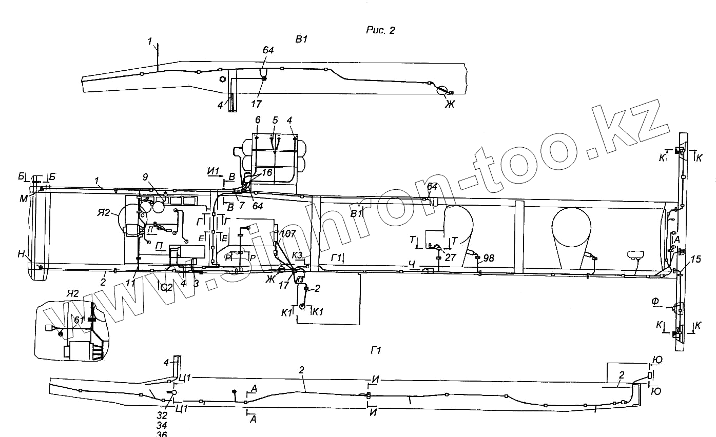 Каталог запасных частей к технике: Камский автозавод 65116. Установка проводов на шасси