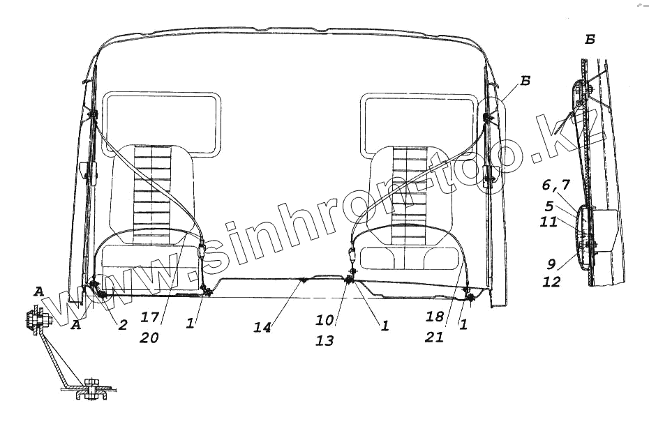 Каталог запасных частей к технике: Камский автозавод 65116. Установка ремней безопасности