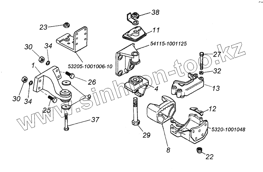 Каталог запасных частей к технике: Камский автозавод 65116. Установка силового агрегата