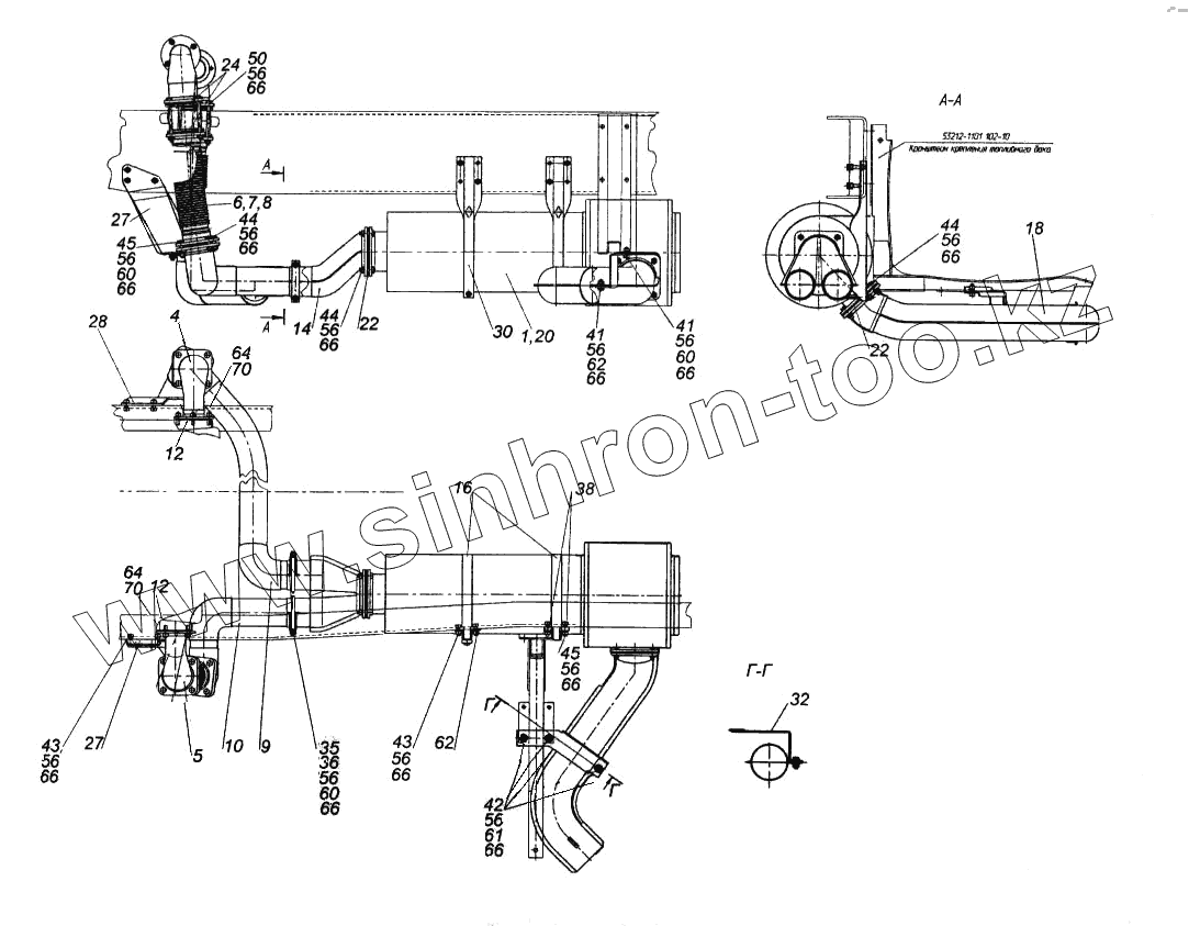 Каталог запасных частей к технике: Камский автозавод 65116. Установка системы выпуска