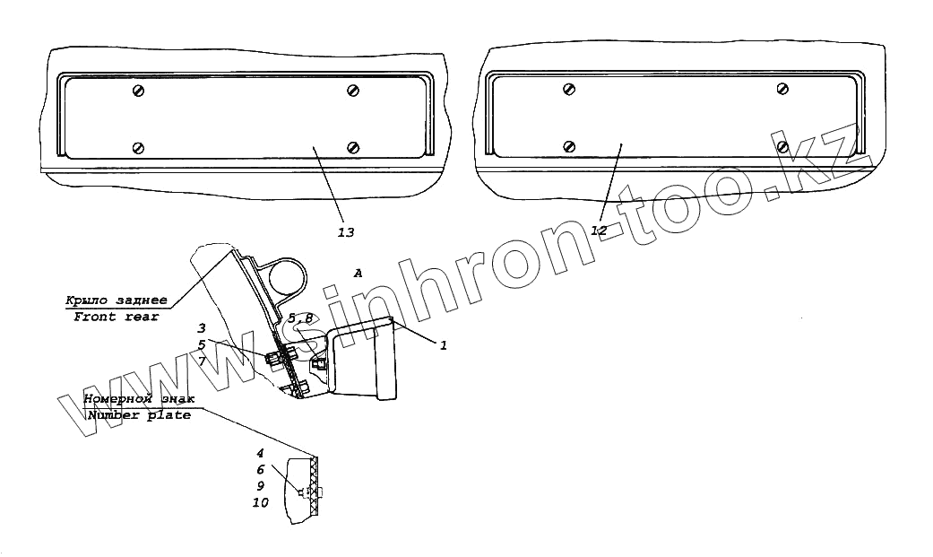 Каталог запасных частей к технике: Камский автозавод 65116. Установка задних фонарей