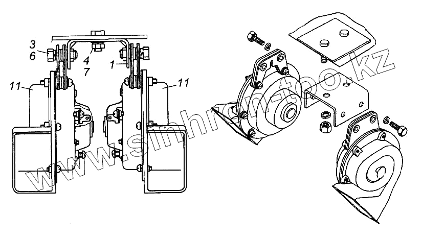 Каталог запасных частей к технике: Камский автозавод 65116. Установка звуковых электрических сигналов