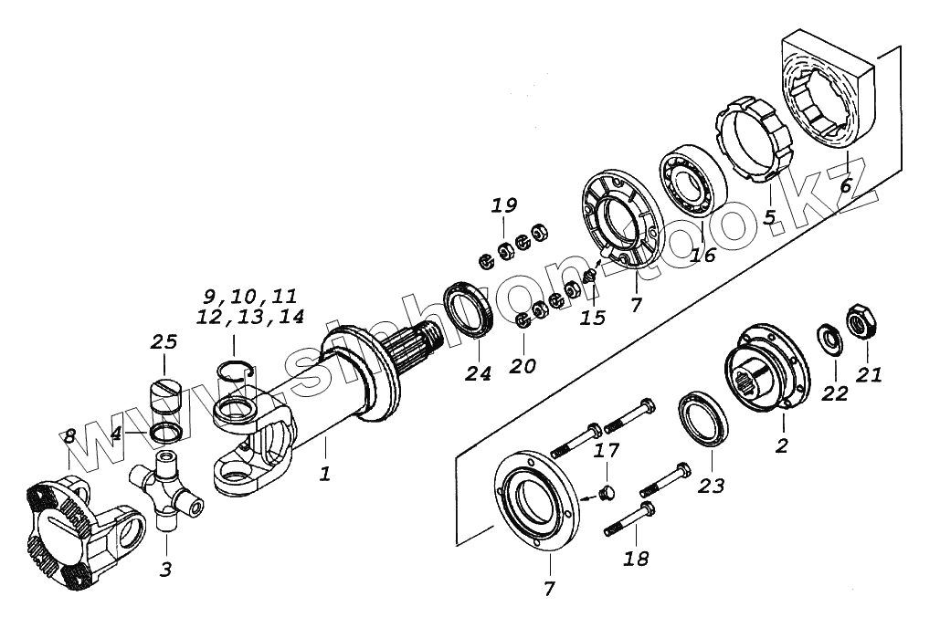 Каталог запасных частей к технике: Камский автозавод 65116. Вал карданный промежуточный с опорой