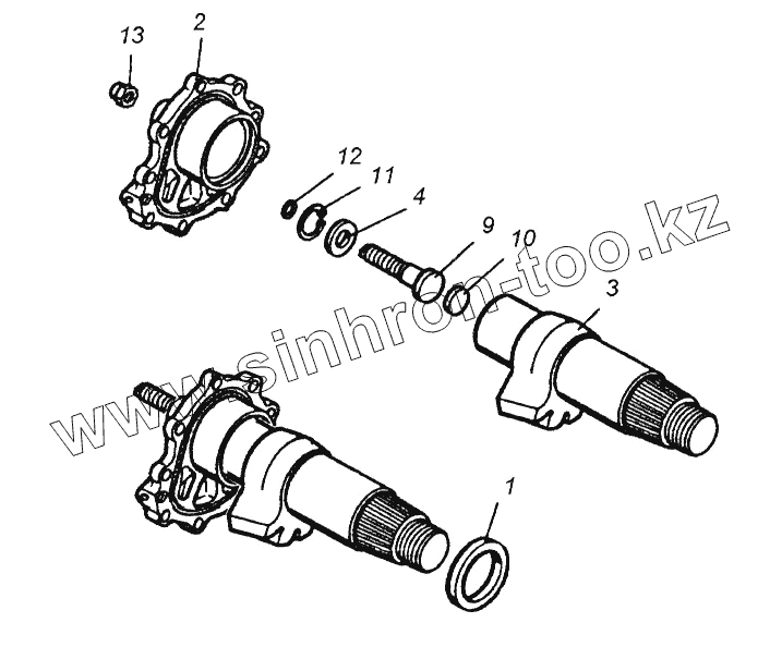 Каталог запасных частей к технике: Камский автозавод 65116. Вал сошки с крышкой