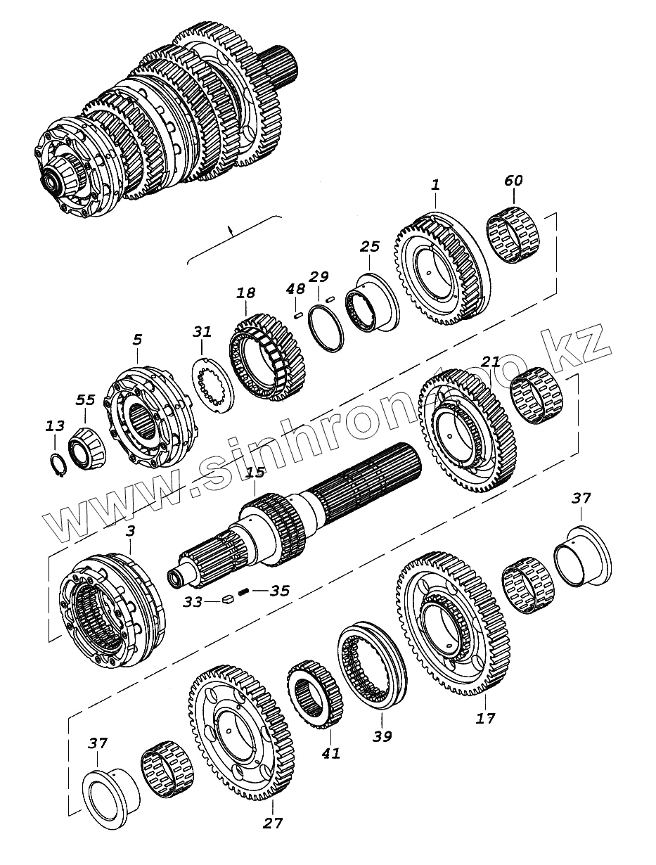 Каталог запасных частей к технике: Камский автозавод 65116. Вал вторичный