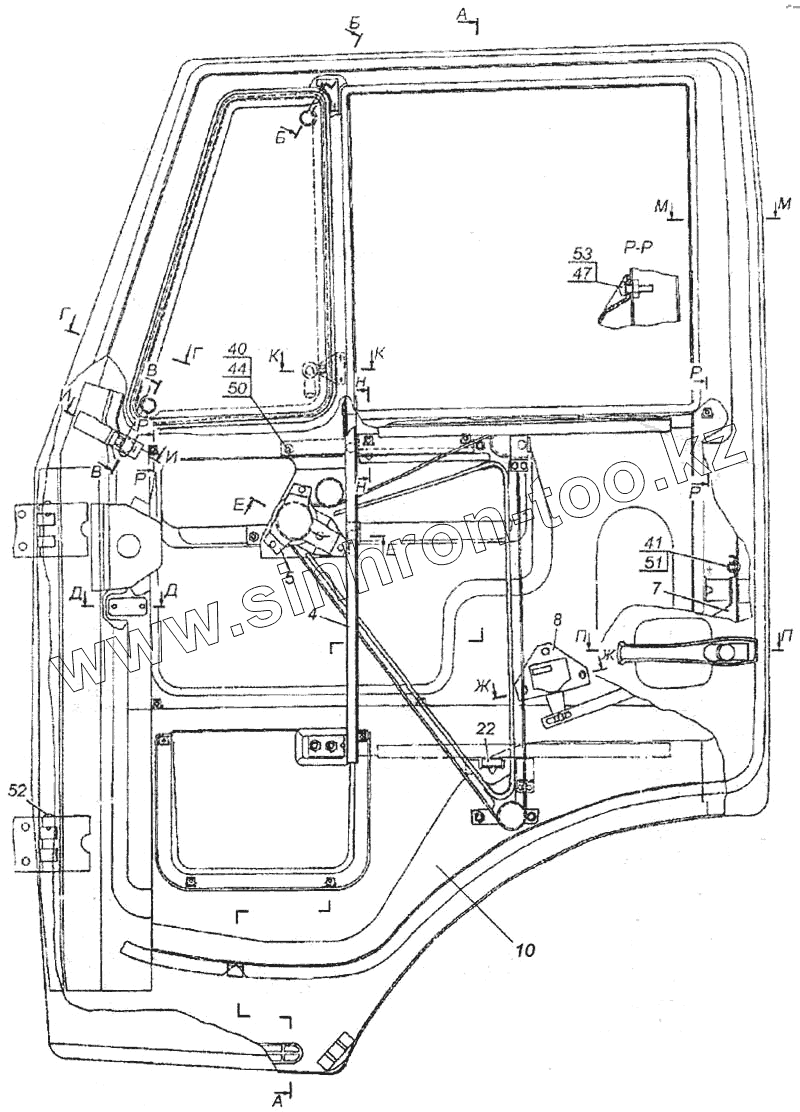 Каталог запасных частей к технике: Камский автозавод 6520. Дверь