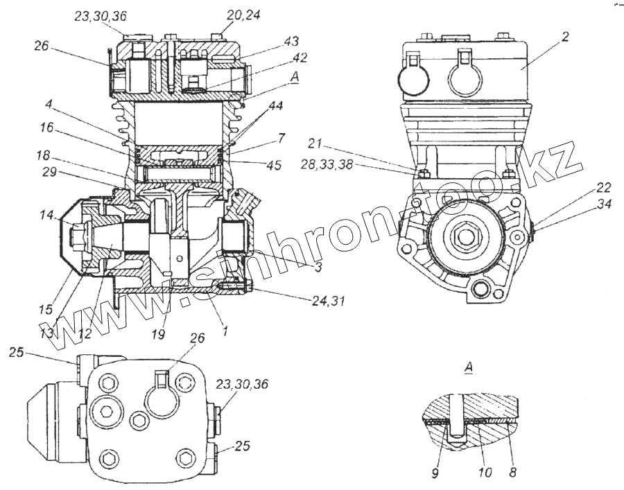 Каталог запасных частей к технике: Камский автозавод 6520. Компрессор пневмотормозов
