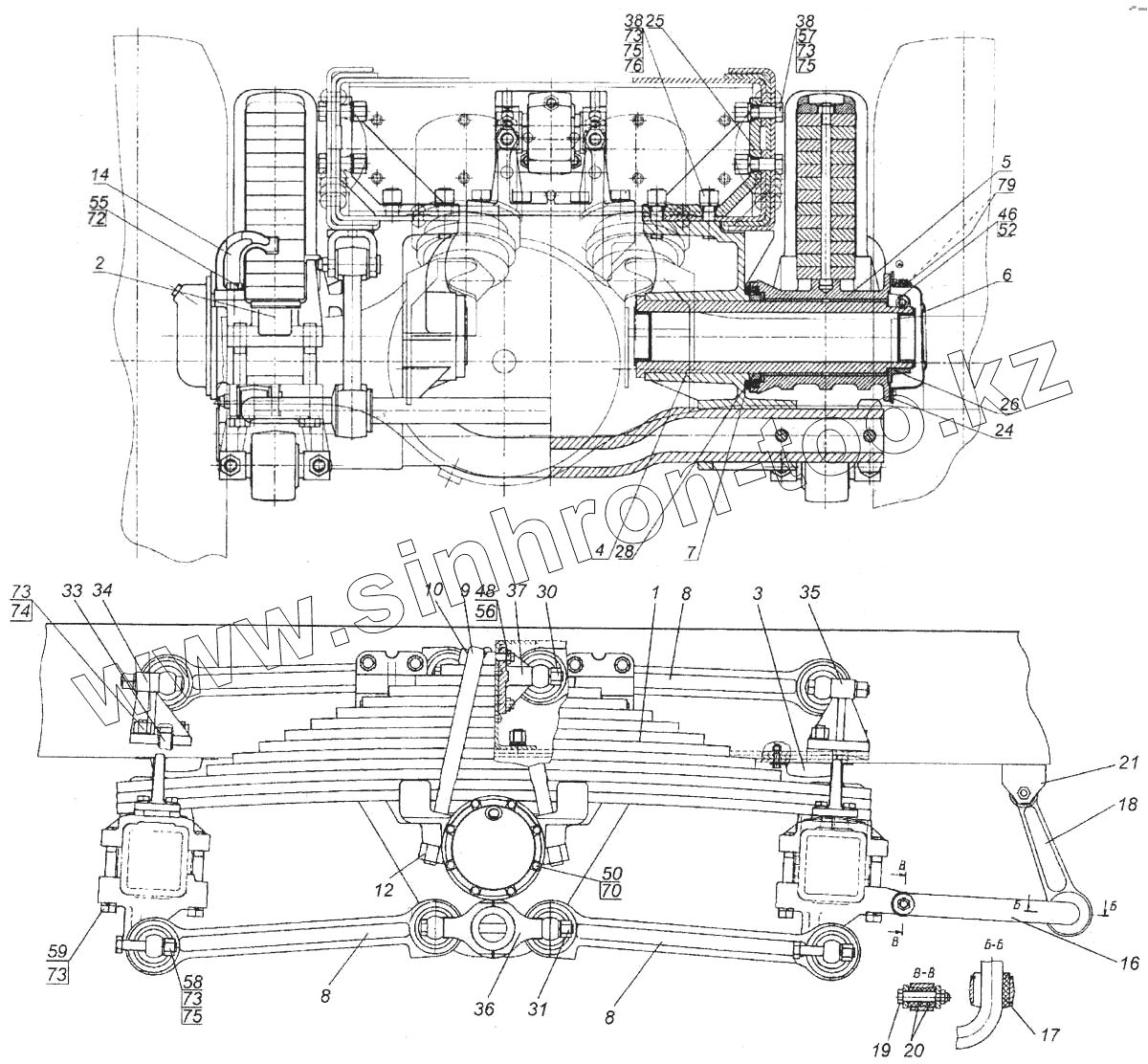 Каталог запасных частей к технике: Камский автозавод 6520. Подвеска задняя в сборе