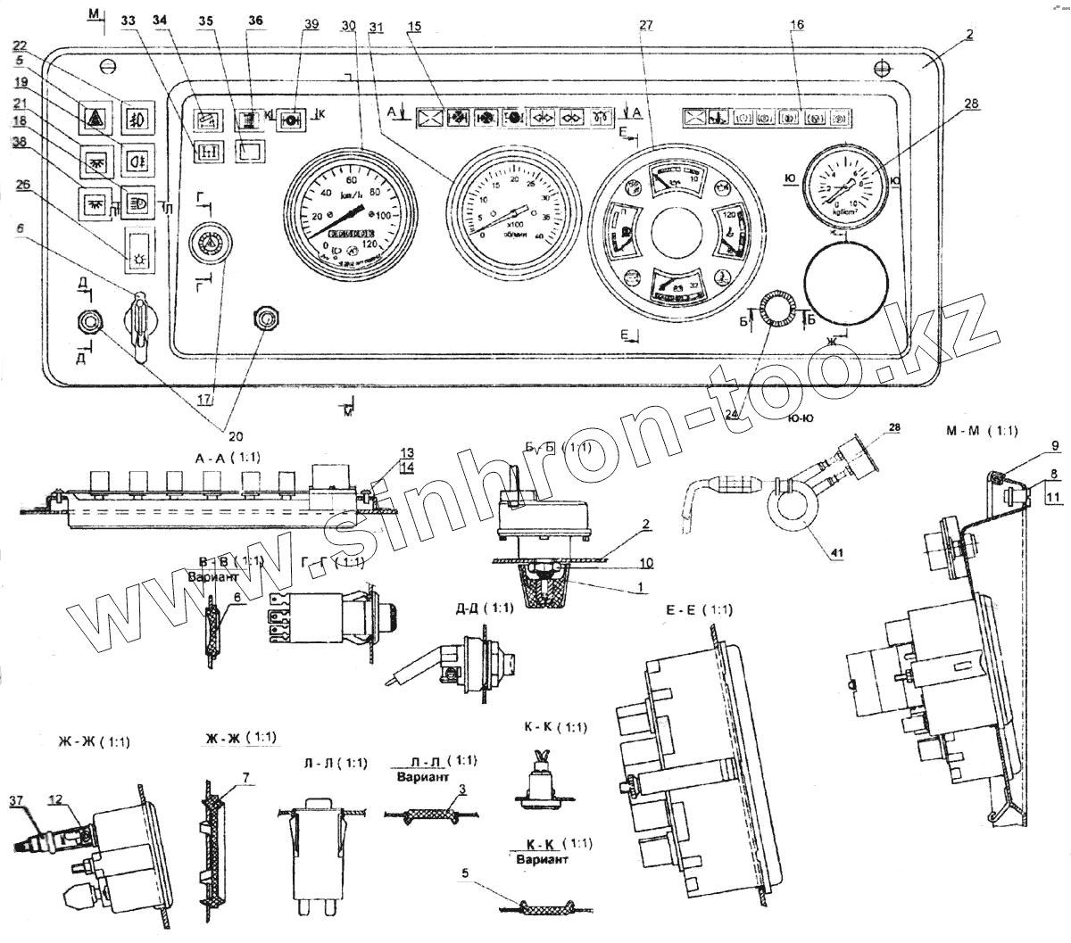 Каталог запасных частей к технике: Камский автозавод 6520. Щиток приборов