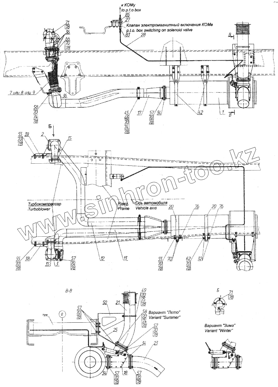 Каталог запасных частей к технике: Камский автозавод 6520. Система выпуска газа