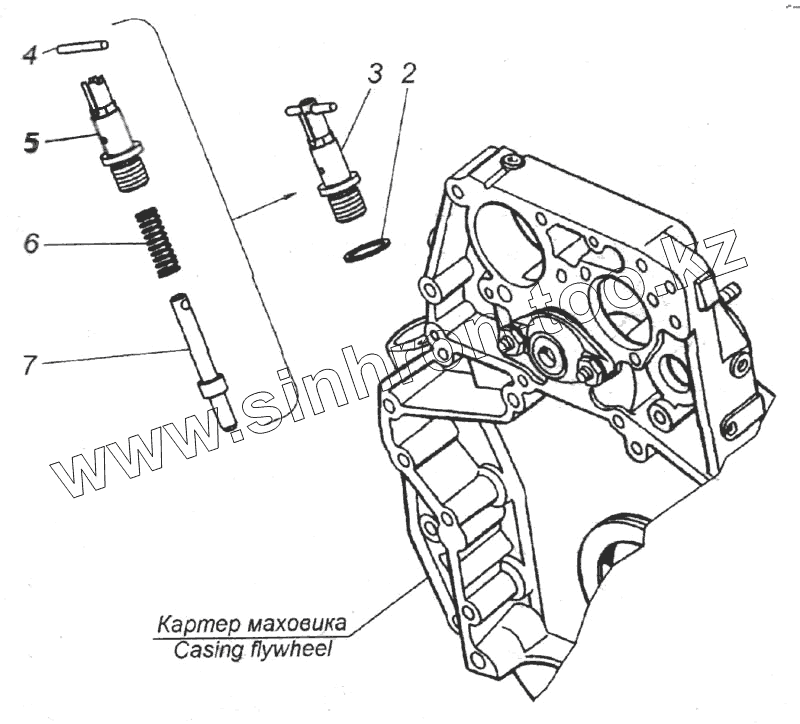 Каталог запасных частей к технике: Камский автозавод 6520. Установка фиксатора маховика