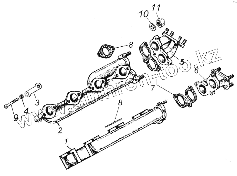 Каталог запасных частей к технике: Камский автозавод 6520. Установка газопровода