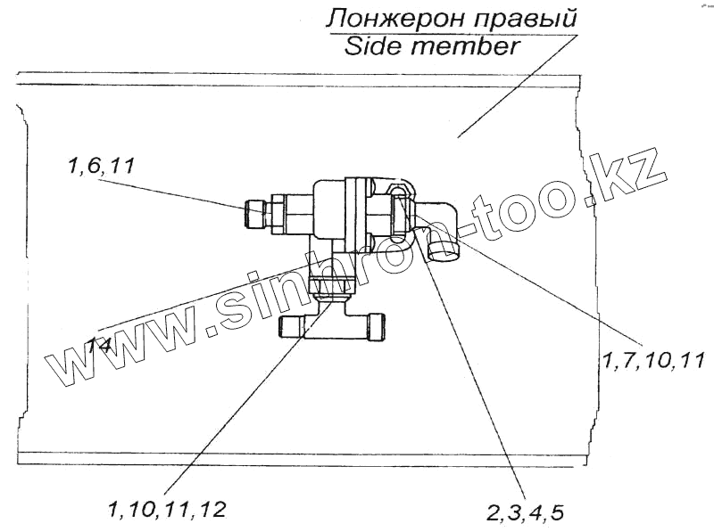 Каталог запасных частей к технике: Камский автозавод 6520. Установка клапана двухмагистрального