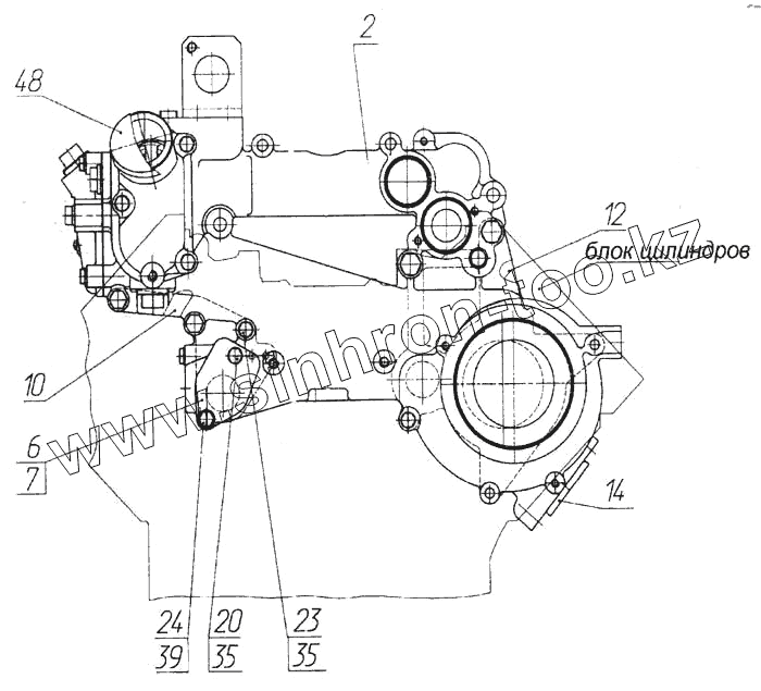 Каталог запасных частей к технике: Камский автозавод 6520. Установка корпуса водяных каналов