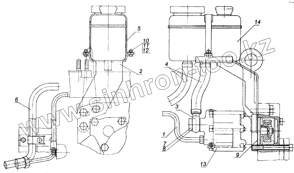 Каталог запасных частей к технике: Камский автозавод 6520. Установка насоса рулевого управления
