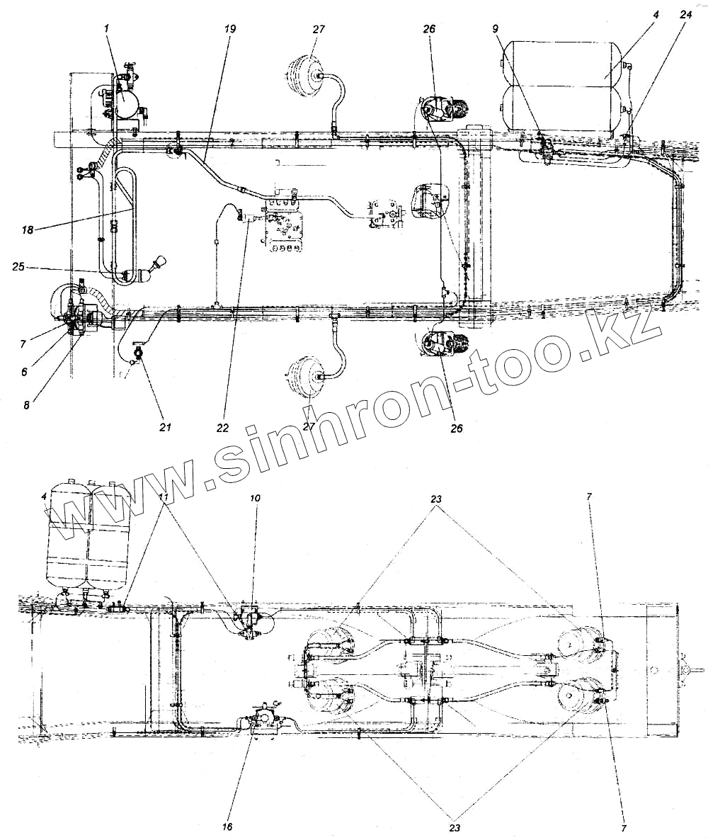 Каталог запасных частей к технике: Камский автозавод 6520. Установка пневмотормозов