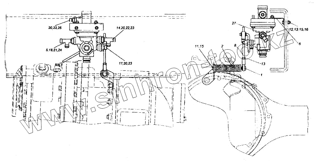 Каталог запасных частей к технике: Камский автозавод 6520. Установка регулятора тормозных сил