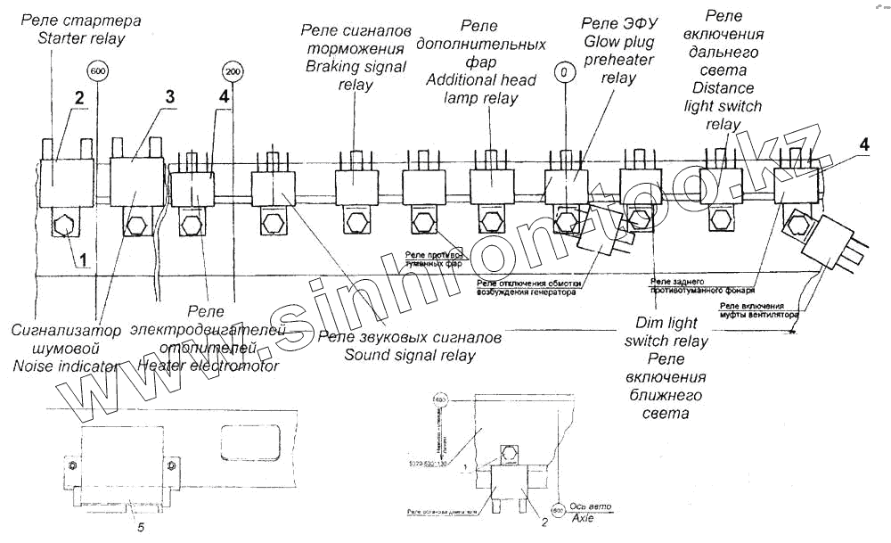 Каталог запасных частей к технике: Камский автозавод 6520. Установка реле