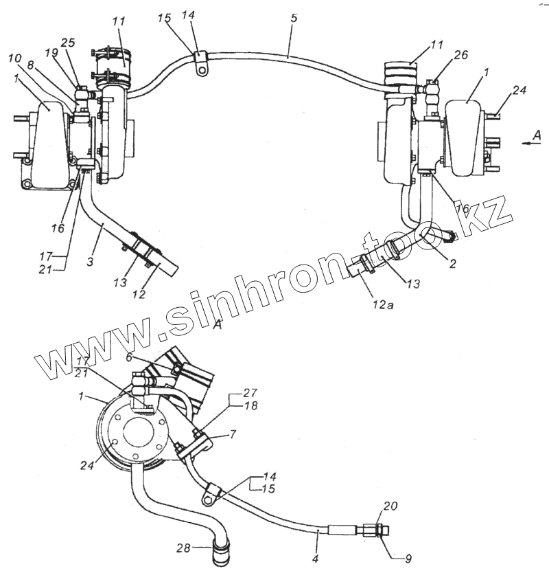 Каталог запасных частей к технике: Камский автозавод 6520. Установка турбокомпрессора