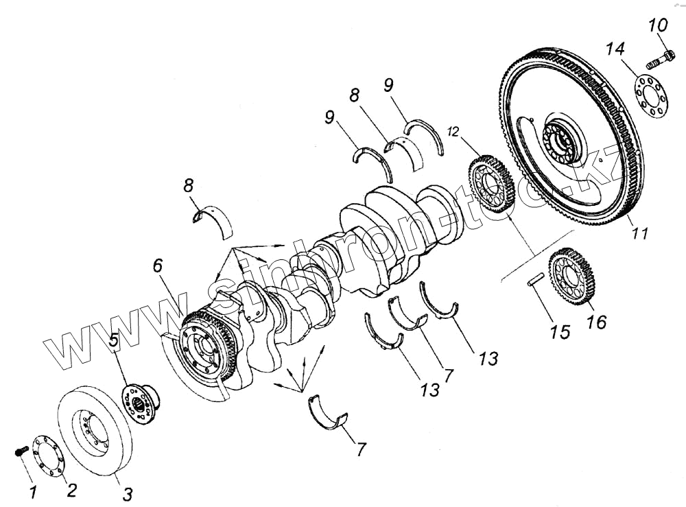 Каталог запасных частей к технике: Камский автозавод 6520. Установка вала коленчатого и маховика