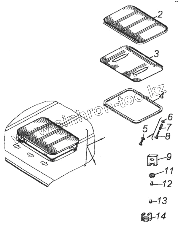 Каталог запасных частей к технике: Камский автозавод 6520. Установка вентиляционного люка крышки