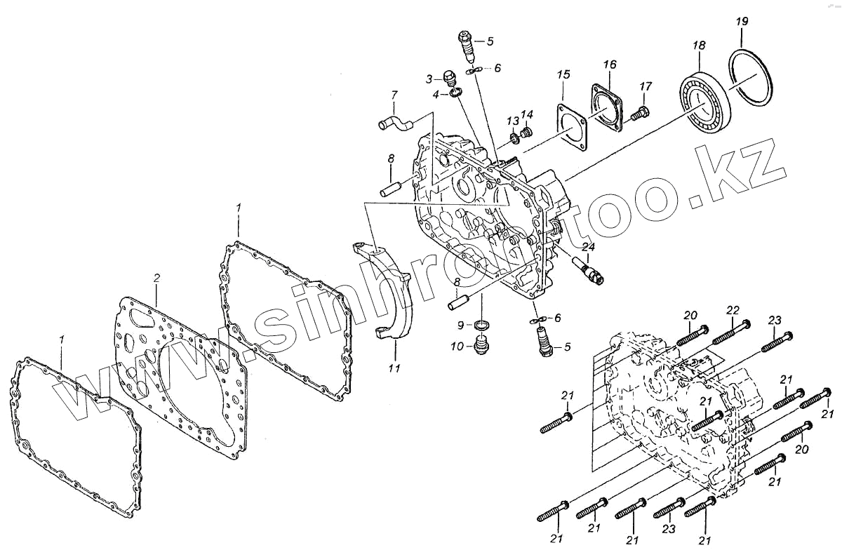 Каталог запасных частей к технике: Камский автозавод 6520. Установка задней крышки картера