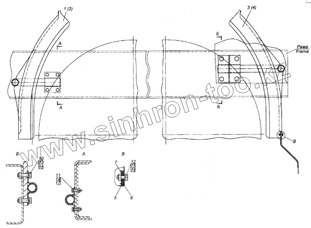 Каталог запасных частей к технике: Камский автозавод 6520. Установка задних крыльев