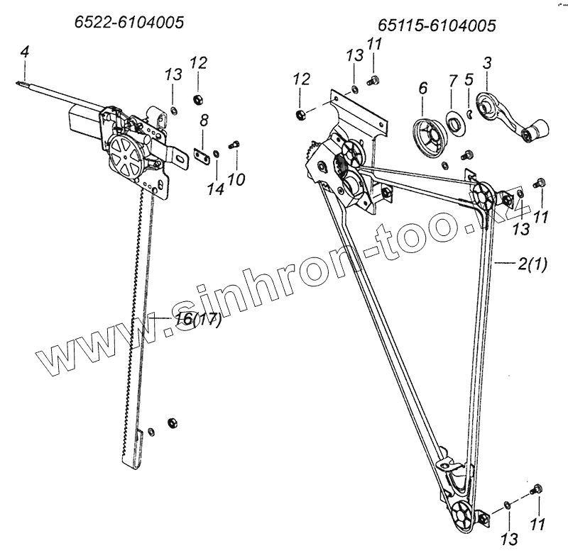 65115-6110005 Установка опускных стекол