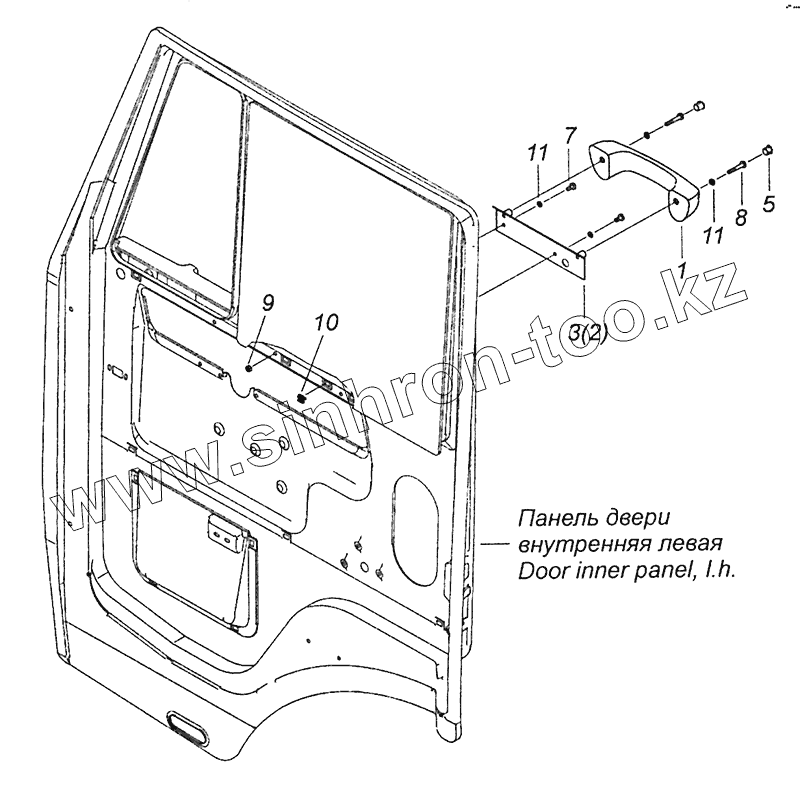 Каталог запасных частей к технике: Камский автозавод 6520 (Euro-4). 65115-6114005 Установка подлокотников двери