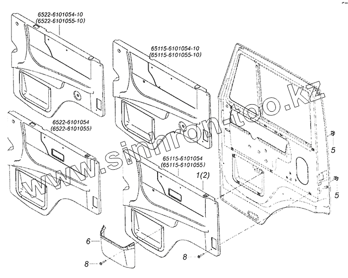 Каталог запасных частей к технике: Камский автозавод 6520 (Euro-4). 65115-6102005 Установка обивок двери
