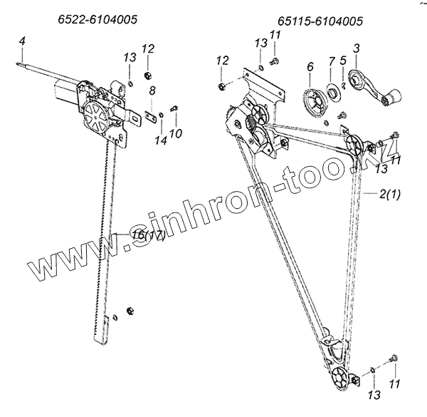 65115-6104005 Установка стеклоподъемников двери