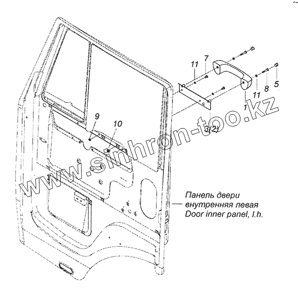 Каталог запасных частей к технике: Камский автозавод 6520 (Euro-4). 65115-6114005 Установка подлокотников двери