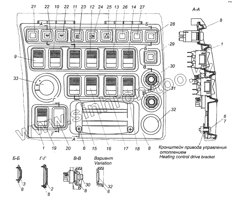 Каталог запасных частей к технике: Камский автозавод 6520 (Euro-4). 65201-3710001-64 Установка выключателей