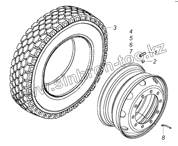 Каталог запасных частей к технике: Камский автозавод 6520 (Euro-4). 65205-3101011 Колесо с шиной