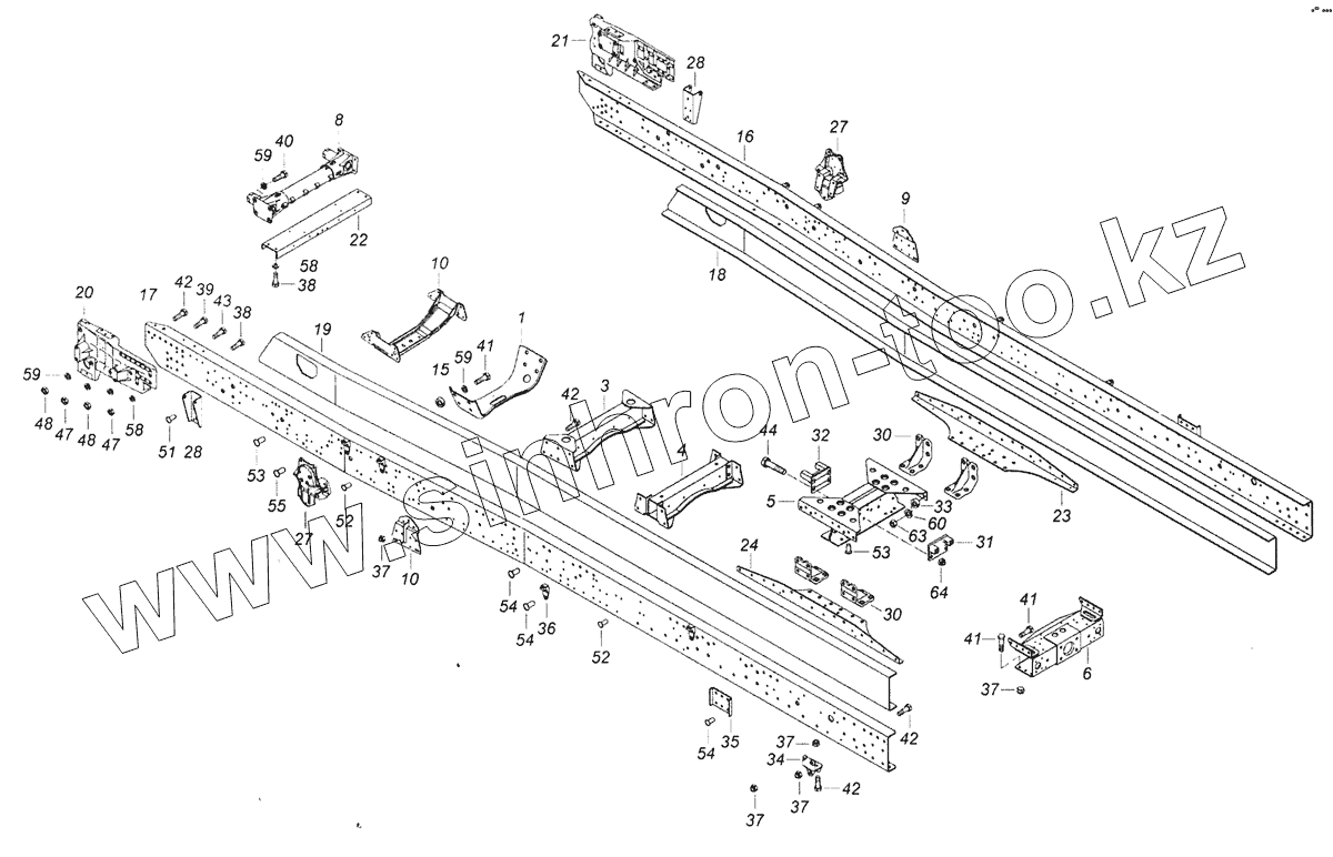 Каталог запасных частей к технике: Камский автозавод 6520 (Euro-4). 6520-2800010-56 Рама