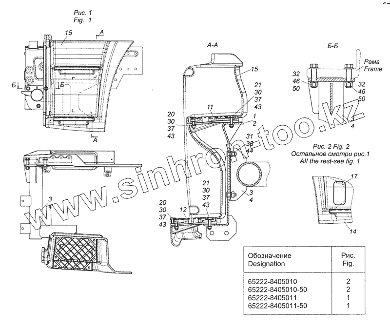 Каталог запасных частей к технике: Камский автозавод 6520 (Euro-4). 65222-8405011 Установка подножек левая
