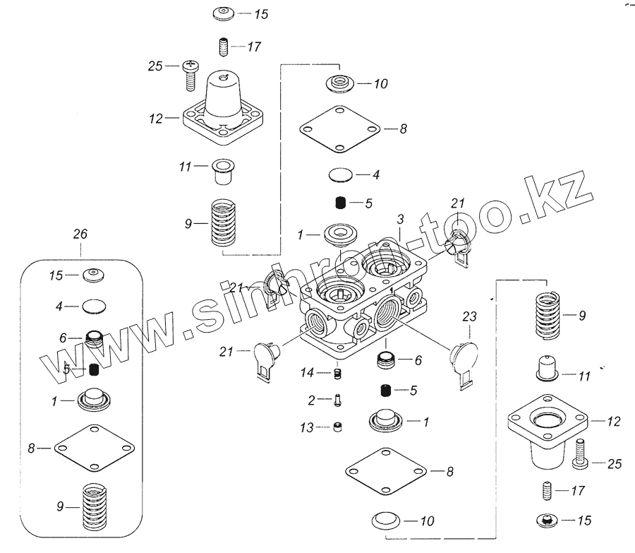 Каталог запасных частей к технике: Камский автозавод 65226. 53205-3515400-10 Клапан защитный четырехконтурный