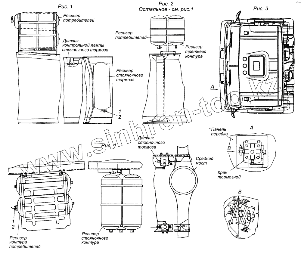 Каталог запасных частей к технике: Камский автозавод 65226. 53205-3830002 Установка датчиков аварийного давления воздуха