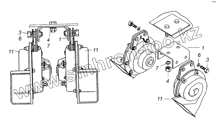 Каталог запасных частей к технике: Камский автозавод 65226. 5320-3721001-10 Установка звуковых электрических сигналов