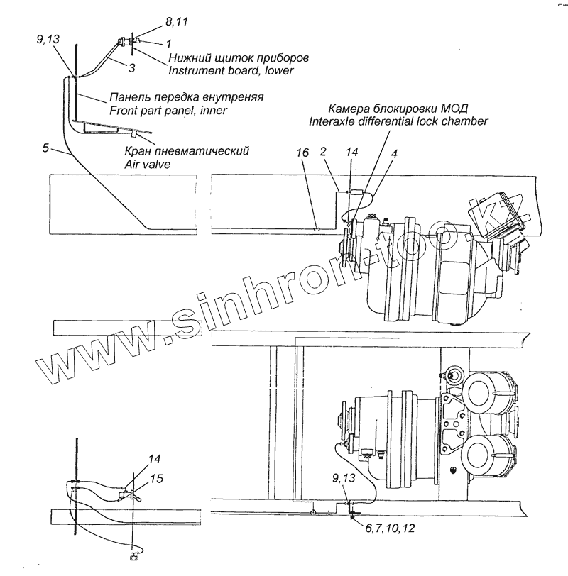 Каталог запасных частей к технике: Камский автозавод 65226. 6520-2511021-30 Привод блокировки межосевого дифференциала