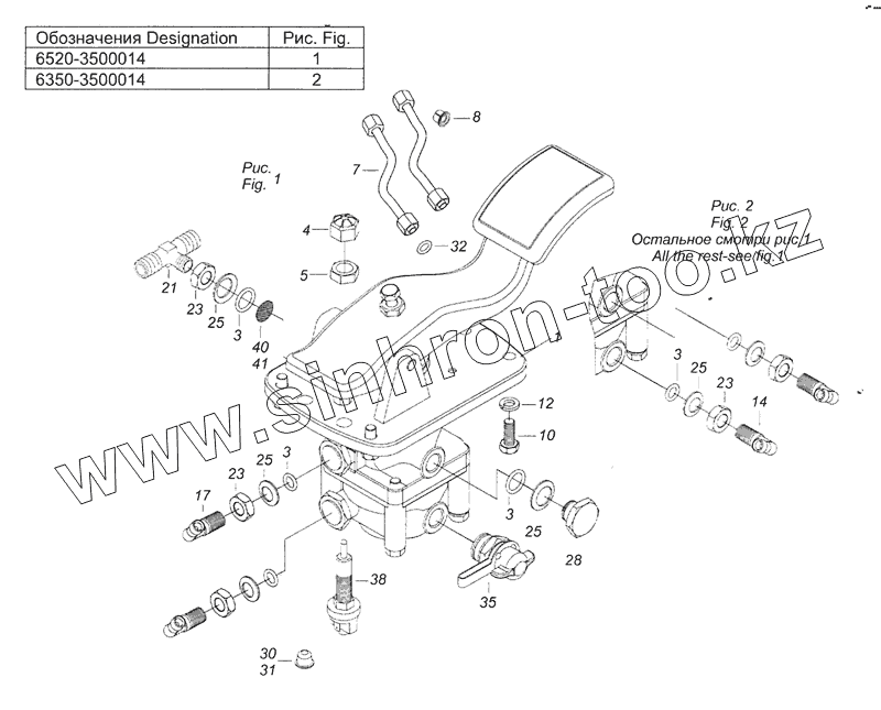 Каталог запасных частей к технике: Камский автозавод 65226. 6520-3500014 Установка двухсекционного тормозного крана