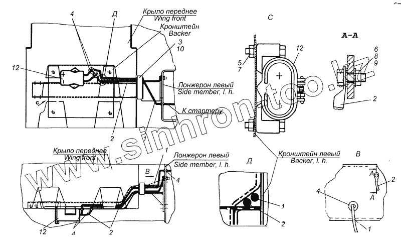 Каталог запасных частей к технике: Камский автозавод 65226. 6520-3723001 Установка розетки внешнего запуска